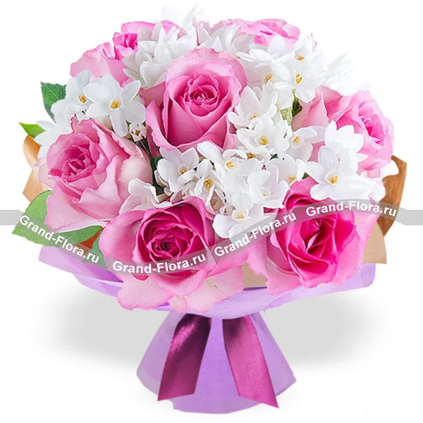 Розовый зефир - букет из нарциссов и роз